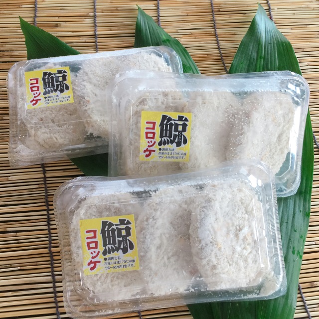 | 原材料 | 鯨肉(つち鯨・国産)、じゃがいも、卵、バター、食塩、醤油、胡椒、味噌、生姜、酒、小麦粉、植物性ショートニング、イースト、イーストフード、砂糖、ぶどう糖、乳加工品、大豆粉、ビタミンC(原材料の一部に小麦、乳、大豆、卵を含む |